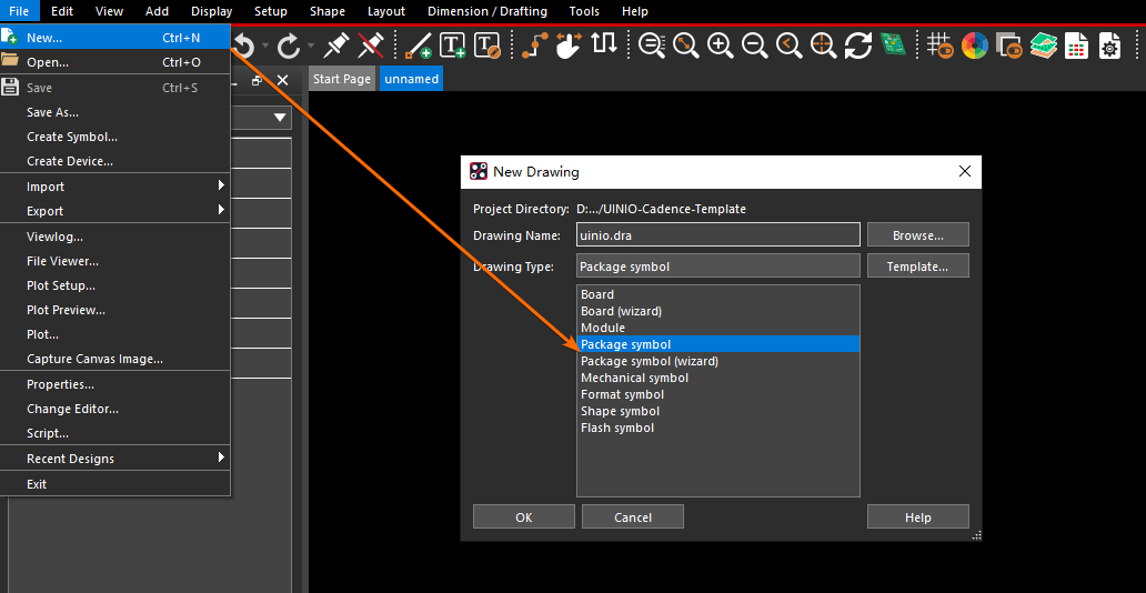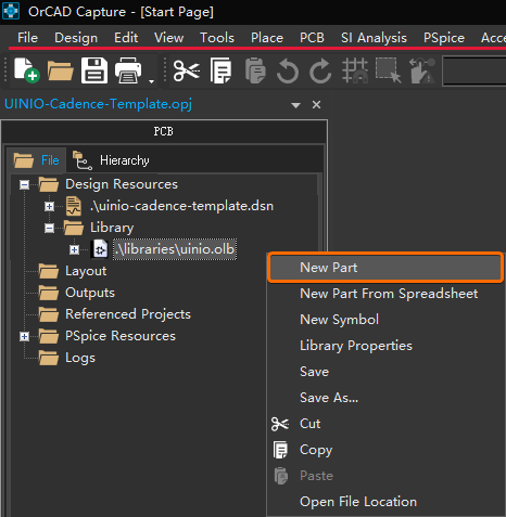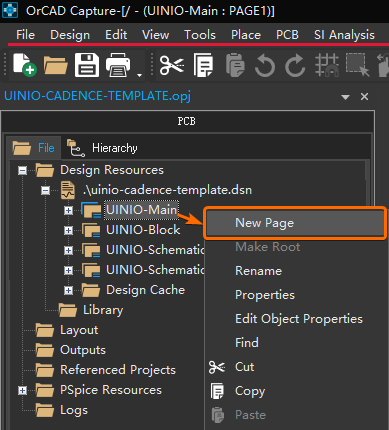 UINIO-Cadence-Template 空文件夹,然后打开 OrCAD