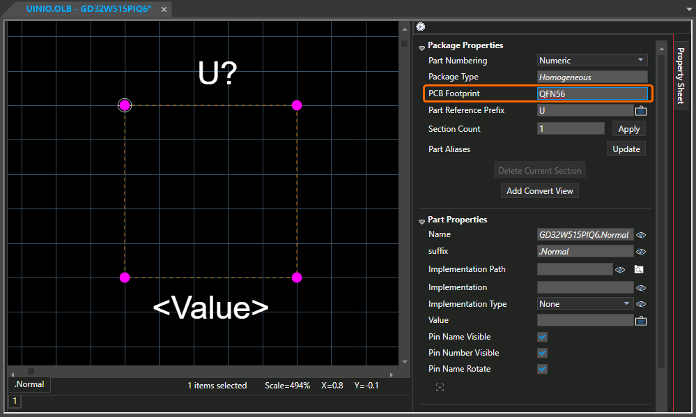 对话框,需要再继续填写原理图符号的名称(这里假设为GD32W515PIQ6),然后鼠标点击【OK】按钮: