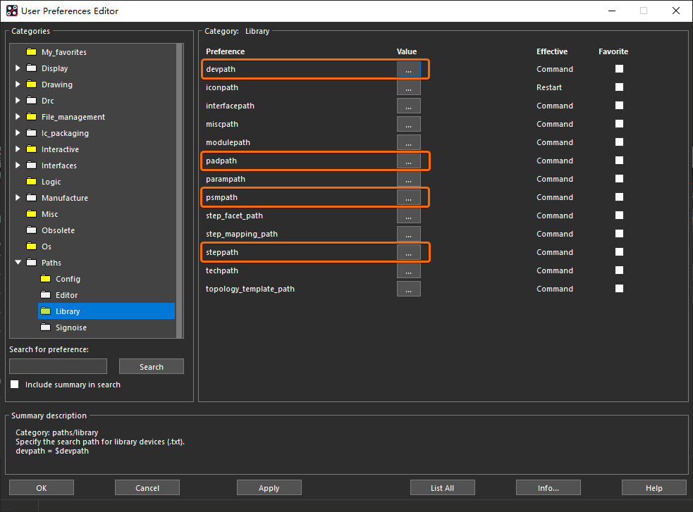 最后,就可以在 Allegro PCB Editor 右侧控制面板上的【Options】选项卡里,点击【...】按钮进行电路网络的分配: