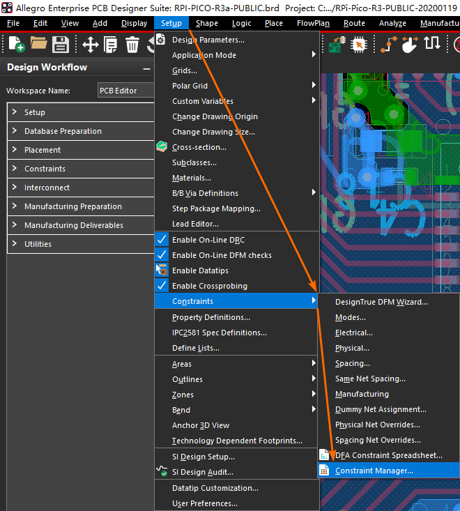 就可以打开 Allegro PCB Editor 提供的约束管理器窗口: