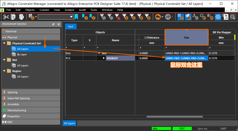 Constraint Set -> All Layers】菜单项,鼠标双击右侧表格当中